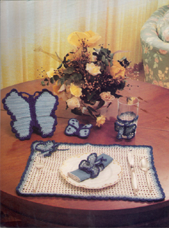 worsted weight yarn; placemat, glassholder and napkin ring made from Size