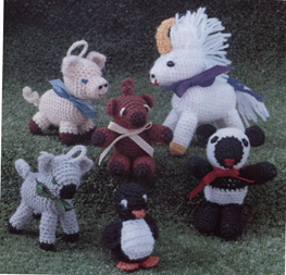 unicorn, kitten, penguin & panda made from sport or baby yarn for